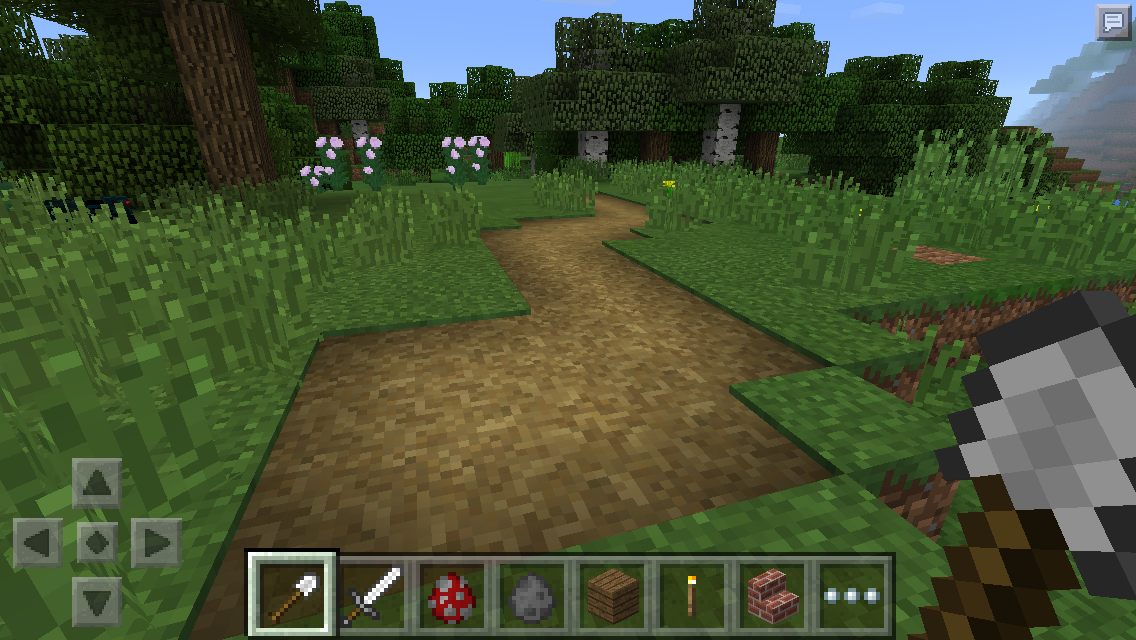 And MC:PE screenshot of the path (with random cave spider in the grass), http://t.co/frnNHQ39pl
